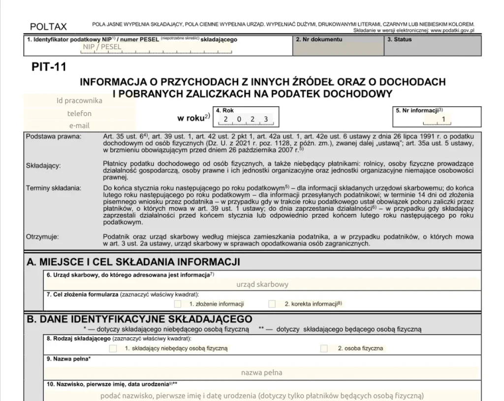 До кінця січня роботодавці повинні надіслати в податкові органи декларації про працівників PIT-11, а до кінця лютого – надати ці документи працівникам. На підставі даних з PIT-11 працівники подають свої декларації – PIT-37. У 2024 році це потрібно зробити з 15 лютого по 30 квітня.
