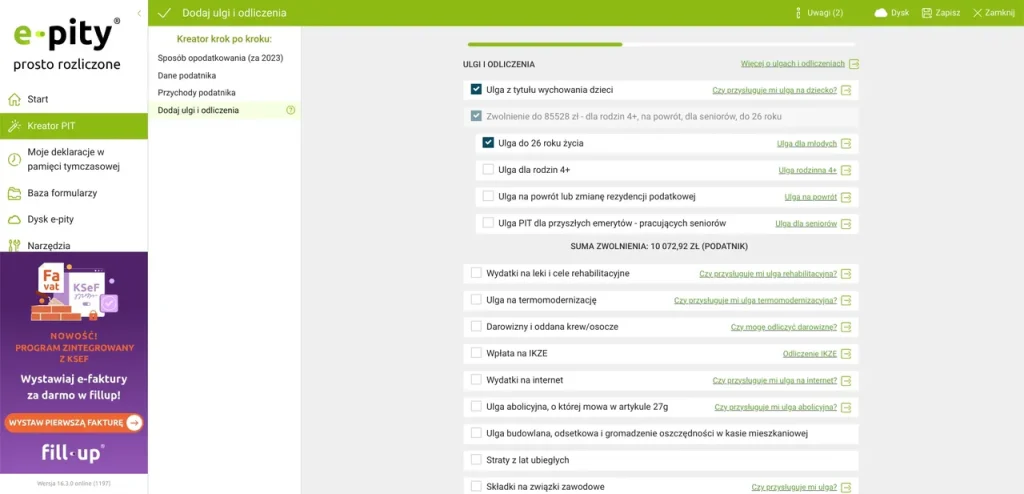 Залишається незабагато – вибрати громадсько-корисну організацію, якій ви хочете пожертвувати 1,5% свого податку, і відправити декларацію, натиснувши кнопку “Wyślij E-deklarację”.